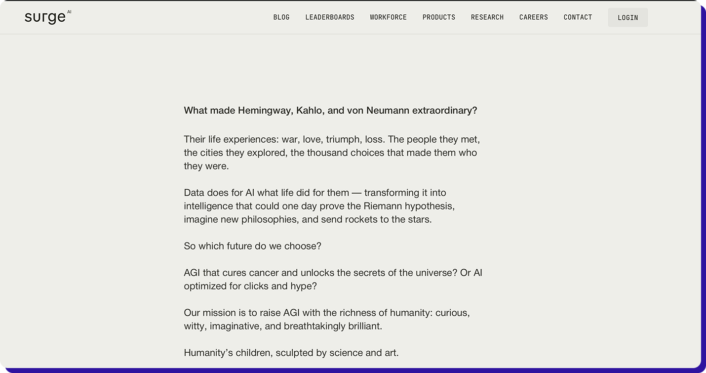 Surge AI is a bootstrapped, profitable managed RLHF platform that crossed $1B ARR in 2025. It operates ~50,000 expert contractors ("Surgers") and is the primary RLHF provider for Anthropic's Claude, with OpenAI and Meta also as clients.
